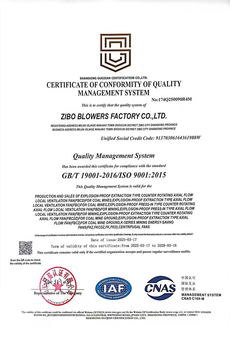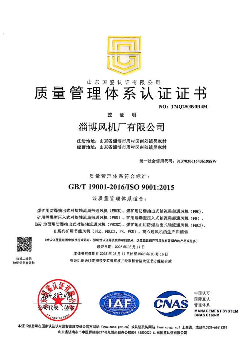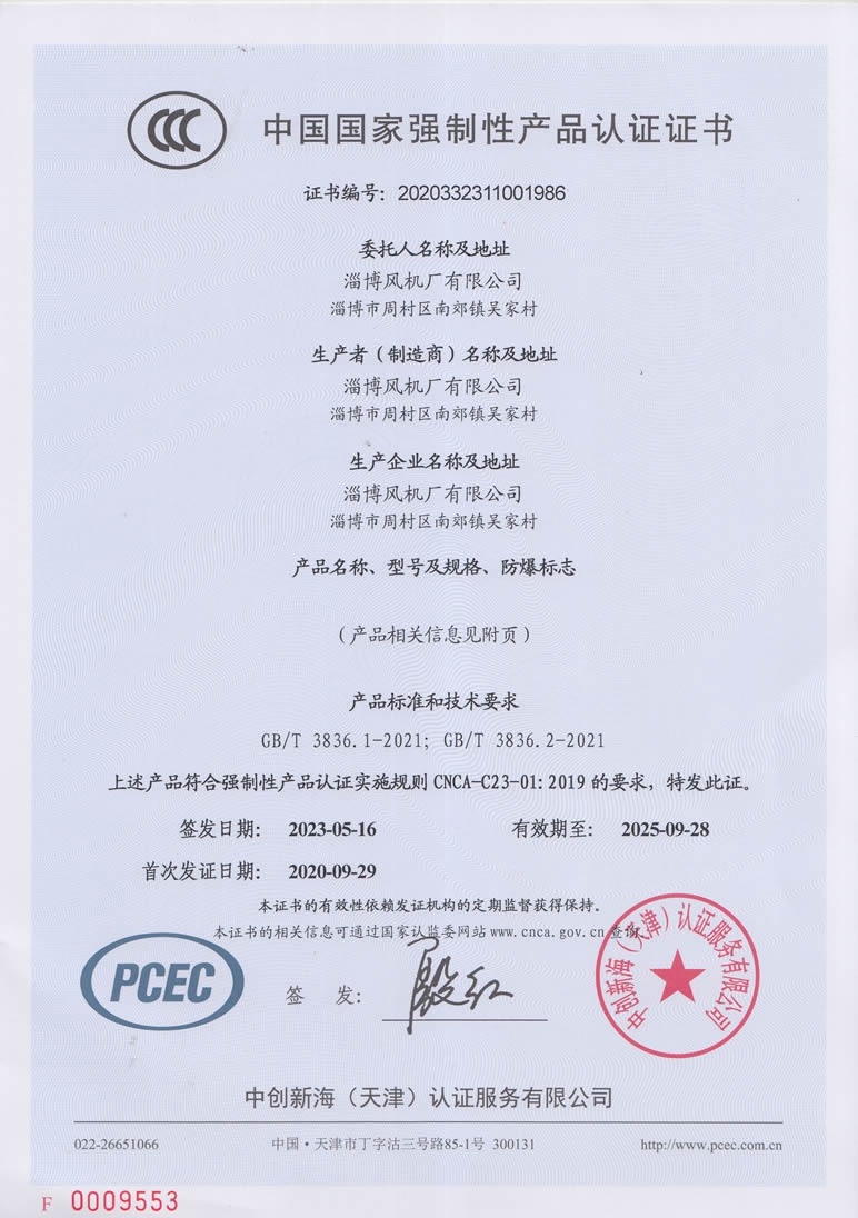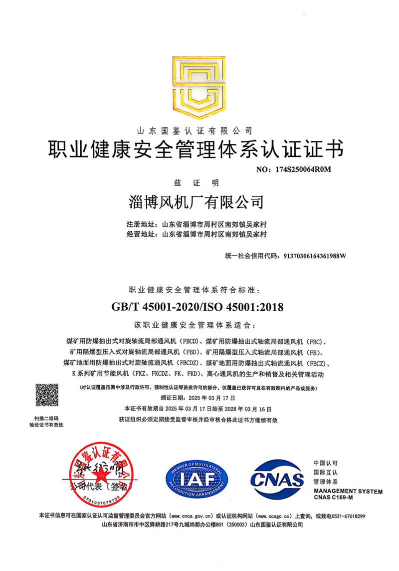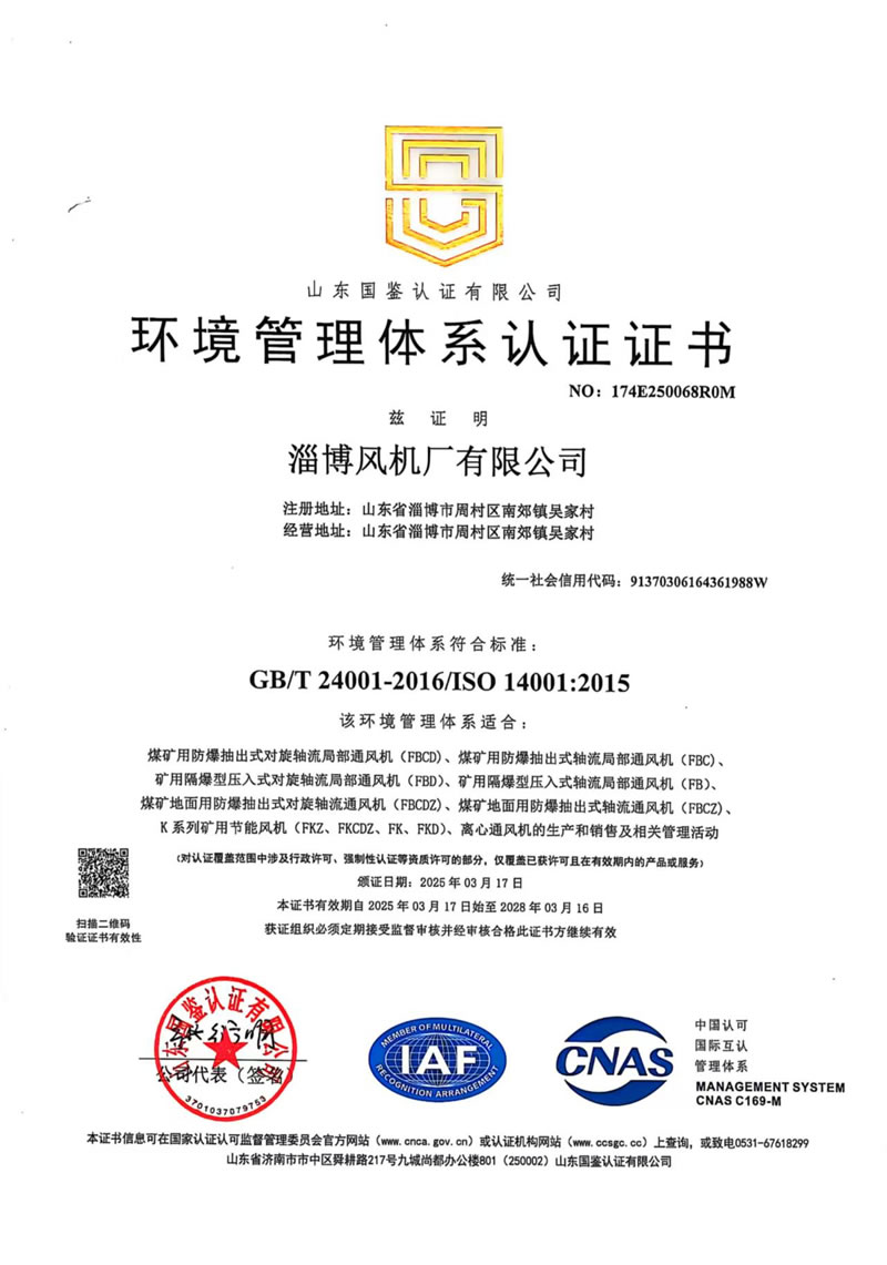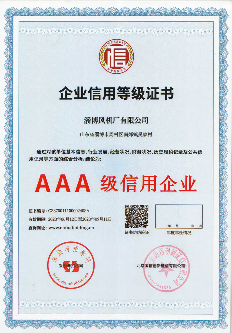 熱烈慶祝:一、淄博風(fēng)機(jī)廠有限公司全系產(chǎn)品通過能效綠色節(jié)能環(huán)保二級認(rèn)證. 二、 淄博風(fēng)機(jī)廠有限公司通過安全標(biāo)準(zhǔn)化驗收合格. 三、注冊資金增資至7800萬.